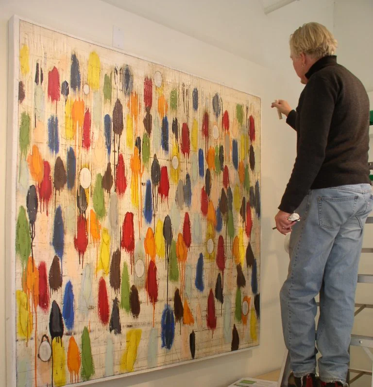 STEPHEN FOSS is widely known for the visually rich surface finish and color that show a return to heavily worked finishes in contemporary painting. His current body of work is a prime example of the physical nature of Foss' visually rich surfaces. Foss applies paint in numerous layers; he then works the surface to allow sublayers and carefully prepared groundwork to peek through the top layer. This results in paintings with varied colors and great depth.
